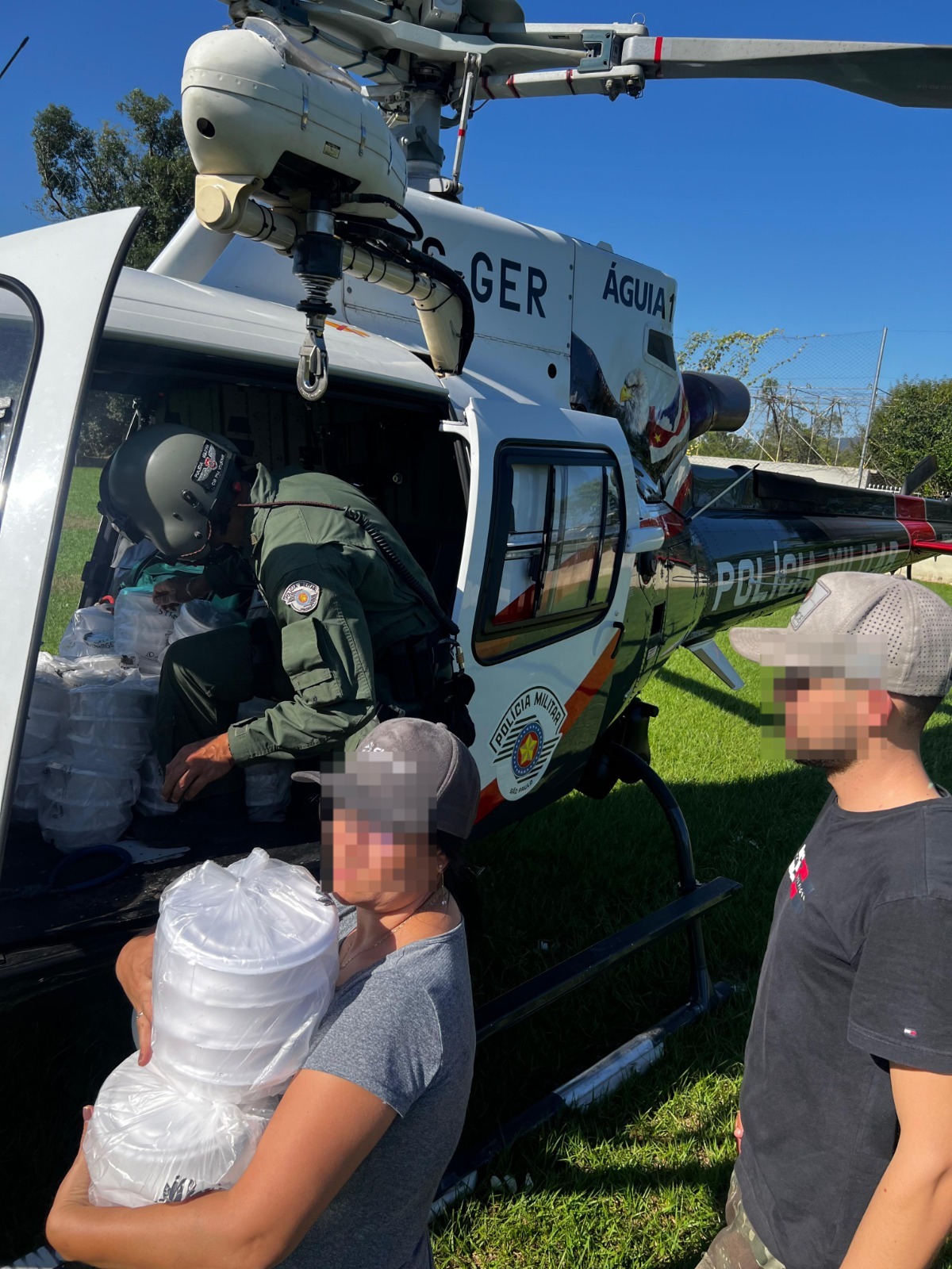 A Polícia Militar de São Paulo entrou no quinto dia de salvamento e apoio às vítimas das chuvas no Rio Grande do Sul. Desde quarta-feira (1º), já foram resgatadas 961 pessoas e 32 animais na ação conjunta dos Bombeiros e policiais do Comando de Aviação paulista.