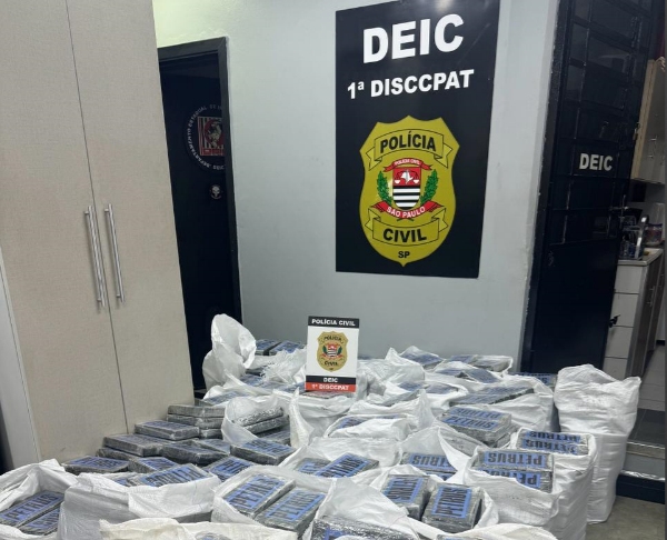 Os investigadores do Departamento Estadual de Investigações Criminais (Deic) encontraram, em uma casa do Jardim Progresso, em Guarujá, pouco mais de 1,2 tonelada de cocaína. O entorpecente estava embalado e separado em 1,3 mil tijolos. Uma mulher, de 25 anos, foi presa.