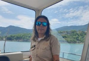 A contramestre Larissa Tavolaro Ferreira já se acostumou com os pedidos frequentes para tirar fotos com os passageiros a quem transporta diariamente na travessia marítima São Sebastião – Ilhabela. Aos 44 anos, a primeira comandante mulher dos ferry boats (balsas) e lanchas da frota da Secretaria de Meio Ambiente, Infraestrutura e Logística (Semil) sempre que pode os atende nos intervalos das operações.