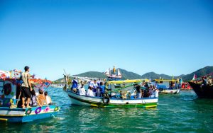 Já no litoral, a festa é mais colorida, com direito a embarcações decoradas e roupas feitas de papel crepom para os foliões mergulharem no mar.