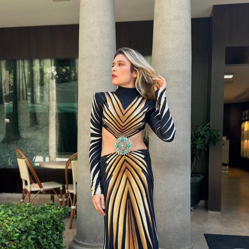 Influencer de Moda e modelo vestiu peças criadas por Roberto Cavalli