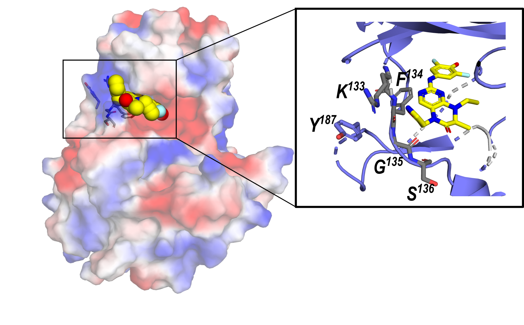 A molécula inibidora, derivada de diidropteridinona, foi inicialmente identificada pela equipe do CQMED e, posteriormente, desenvolvida pelos cientistas do Aché. Os pesquisadores conduziram ensaios desenvolvidos especificamente para demonstrar a ação da molécula na proteína dentro do ambiente celular.