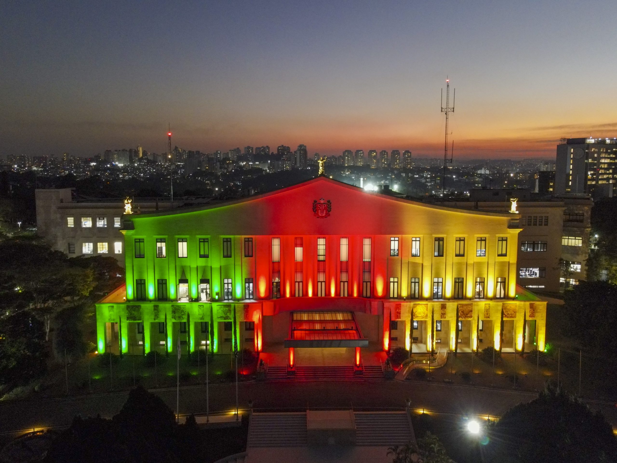 O Palácio dos Bandeirantes, sede do governo do Estado de São Paulo, no Morumbi, zona sul da capital, ficará iluminado por uma semana com as cores da bandeira do Rio Grande do Sul para homenagear a população vítima das fortes chuvas.