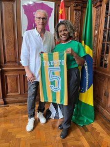 Fausto ao lado da secretária de Esportes do Estado, coronel Helena Reis