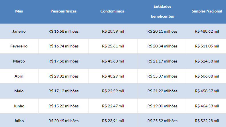 Deste montante, R$ 25 milhões foram destinados a instituições filantrópicas para utilização em seus projetos. Já as pessoas físicas, que solicitaram CPF nas notas fiscais de suas compras, têm à disposição R$ 20 milhões.