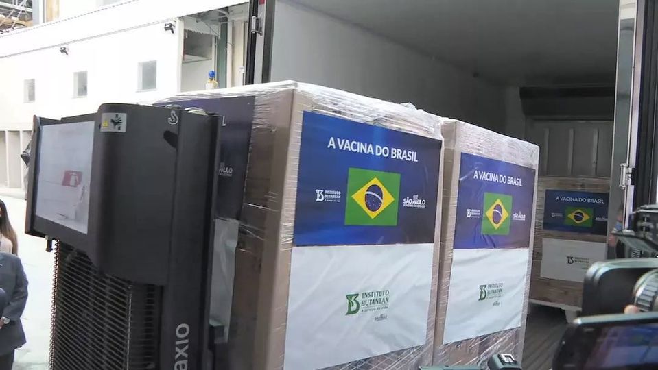 As vacinas enviadas nesta manhã fazem parte do segundo contrato firmado com o Ministério da Saúde, de 54 milhões de imunizantes.