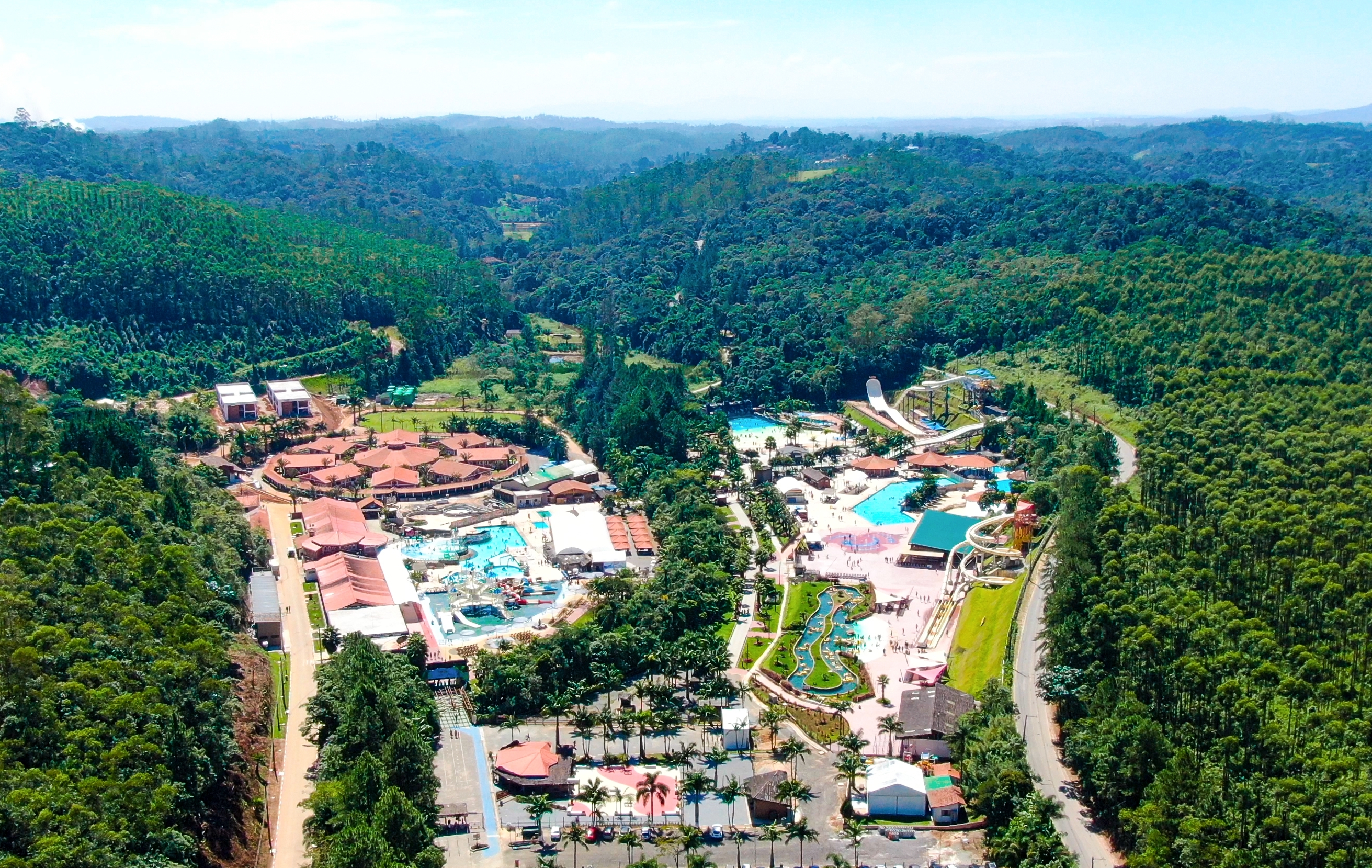 O complexo integra parque aquático, hospedagem, gastronomia e áreas de convivência em meio à natureza, com operação durante todo o ano. Entre os diferenciais estão as atrações aquecidas e cobertas, que permitem o uso mesmo em dias mais frios, além de piscinas e áreas ao ar livre para momentos de calor. A estrutura também inclui mais de 500 leitos de hospedagem, possibilitando tanto visitas de um dia quanto estadias prolongadas .