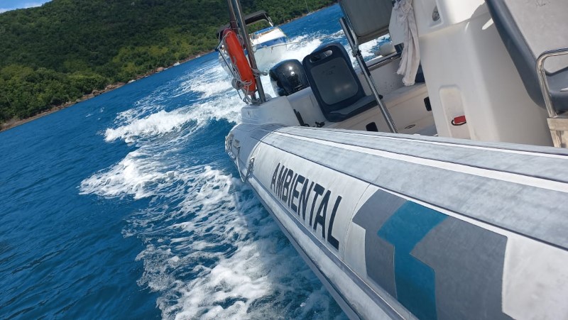 Os policiais da 5ª Companhia de Polícia Militar Ambiental Marítima patrulhavam o entorno durante a Operação Verão e notaram à distância uma extensa nuvem de fumaça e, ao se aproximarem, identificaram uma lancha com diversas pessoas a bordo solicitando ajuda.