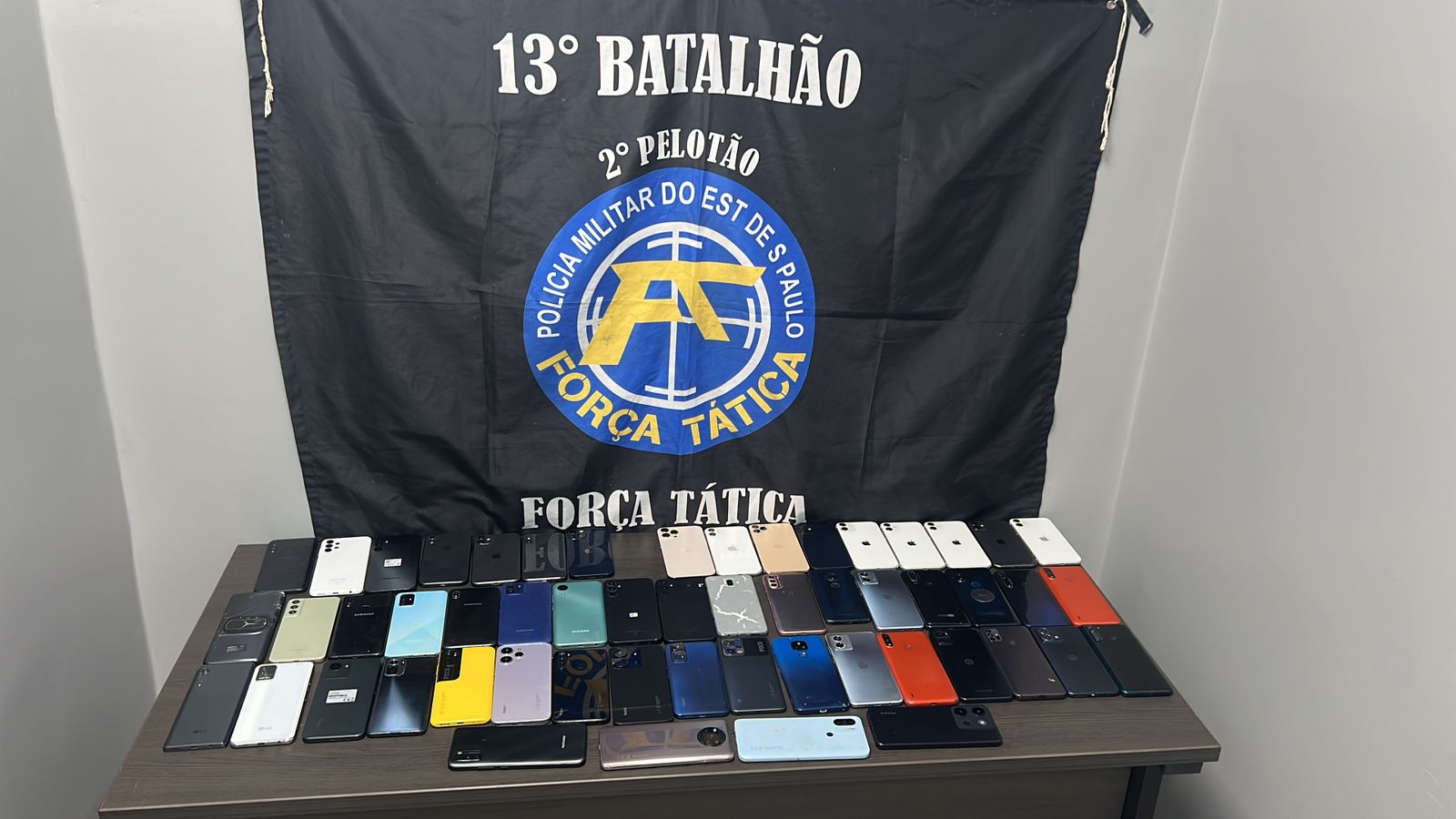 Em buscas nas unidades indicadas, os PMs encontraram 12 celulares em um dos quartos e 41 aparelhos em outro. Dois suspeitos foram identificados no local e foram conduzidos ao 3º Distrito Policial (Campos Elíseos).