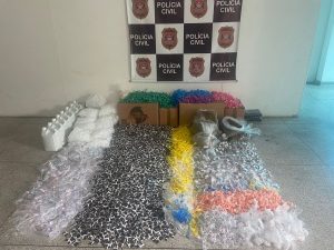 No total, foram recolhidas 28,2 mil porções de cocaína, mil de maconha, sendo parte dela misturada com uma substância conhecida como K2, 600 de skunk, 3 mil pedras de crack, além de 624 frascos com lança-perfume e os galões com líquido da substância.