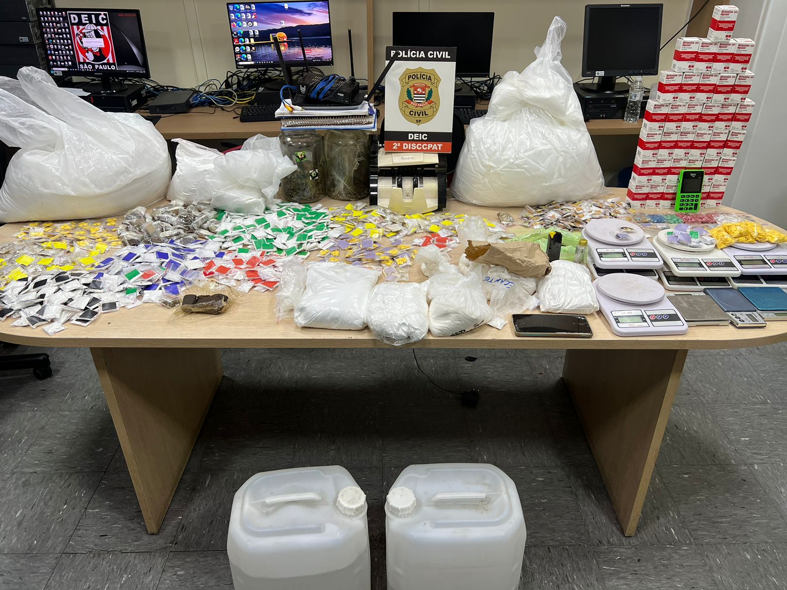 Policiais do Departamento Estadual de Investigações Criminais (Deic), da Polícia Civil, estouraram dois depósitos de drogas e apreenderam uma metralhadora, veículos e produtos falsificados durante a Operação Heliópolis, realizada na região do Sacomã, zona sul de São Paulo, na tarde da última sexta-feira (23).