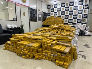 Ao retornarem ao pátio do estacionamento do galpão, os policiais localizaram um cômodo sem iluminação com mais 116 fardos de drogas de maconha. No total, foram apreendidos 135 fardos, contendo 5.300 tijolos, que pesaram 4,3 toneladas de maconha. Os dois veículos utilizados no transporte da droga, uma balança de precisão e quatro celulares foram apreendidos.